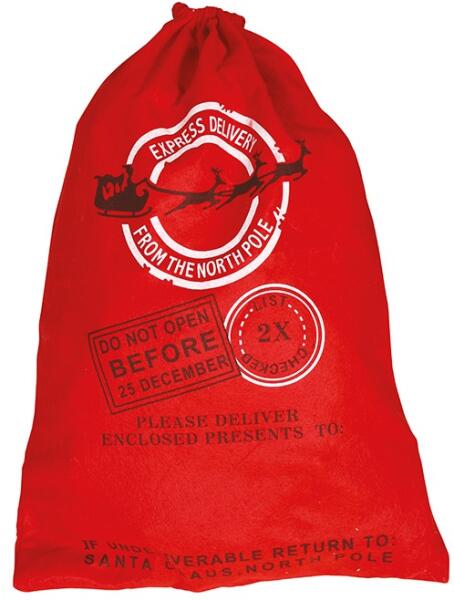 Mikluás batyu lenyomattal Minden  Mikulásnak vagy Santának  szüksége van egy batyura, hogy legyen hova raknia az ajándékokat és édességeket, ahhoz, hogy a megfelelő személyekhez jusson el, ezért a legmegfelelőbb, ha ilyen batyuja van a    Mikulásnak vagy  Santának.   méretek :  68 cm x 45 cm