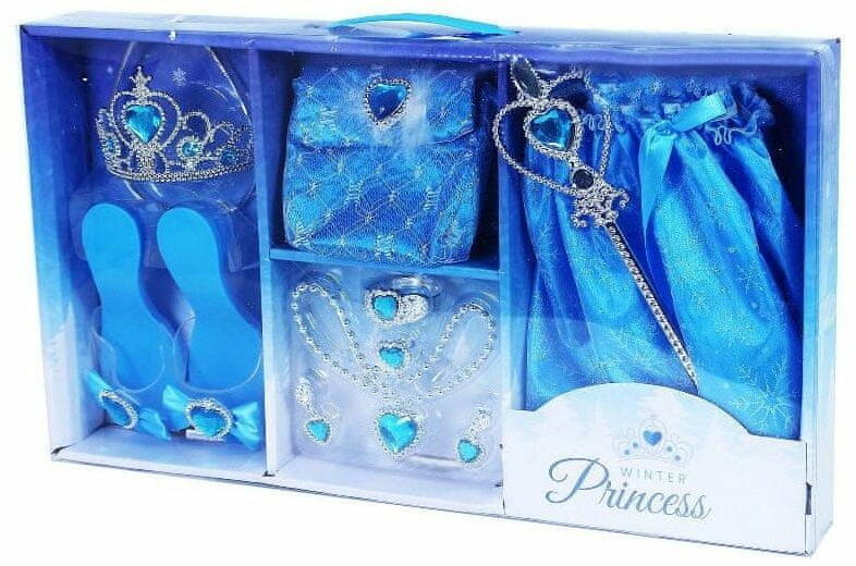 Kék színű készlet minden kis hercegnőnek. A Package mindent tartalmaz, amire egy igazi hercegnőnek szüksége van. Ide tartozik a cipő, a korona, a kézitáska és egyéb kiegészítők. Exkluzív kiegészítők, amelyeket egyetlen hercegnőnek sem szabad kihagynia!
