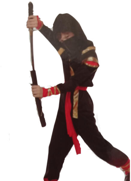Ninja farsangi jelmez. Méretek: M: 110-120 cm. L: 120-130 cm. Xl: 130-140 cm